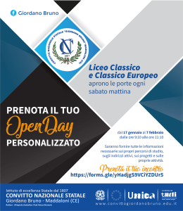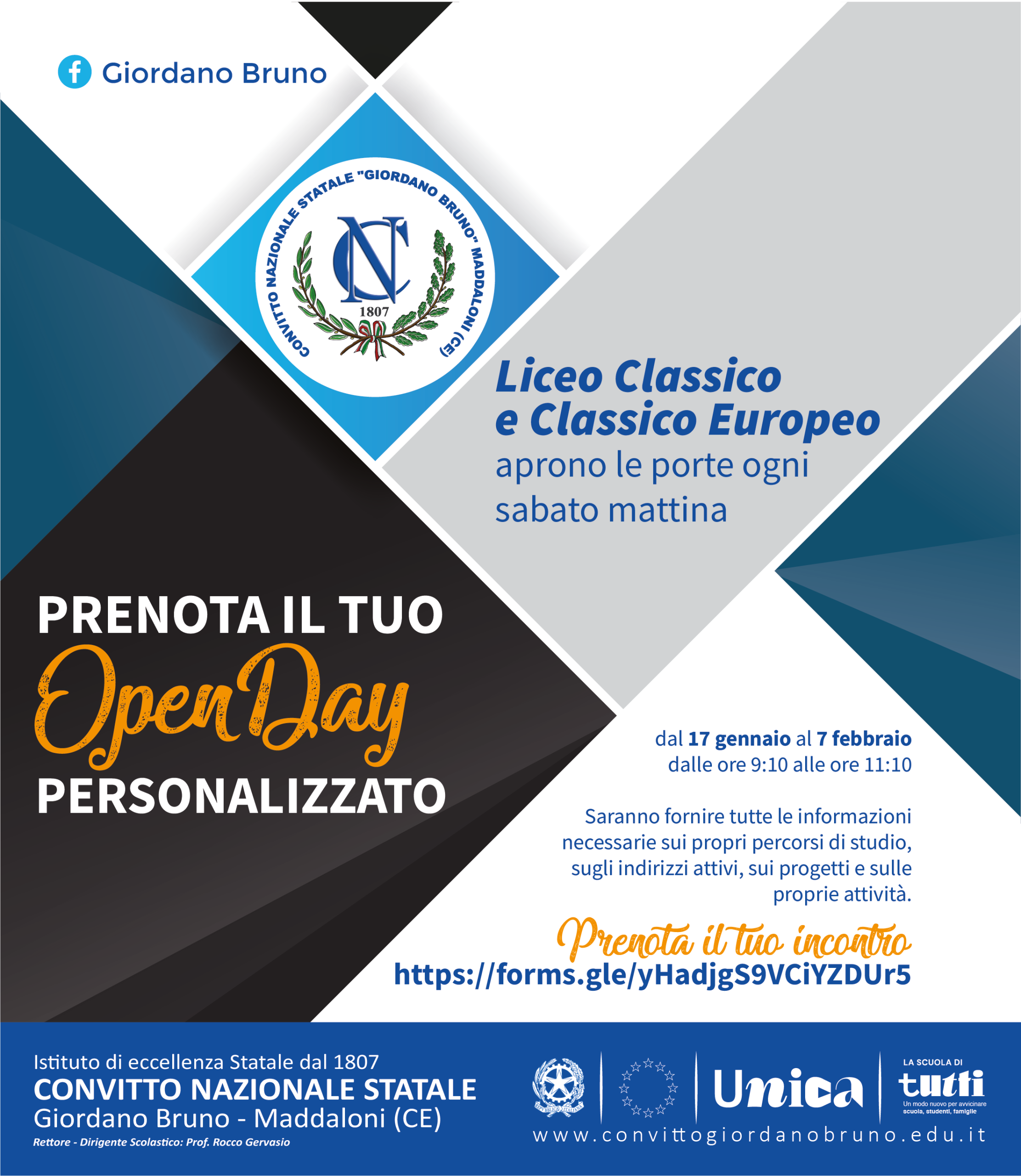 CLICCA SULL’IMMAGINE E PRENIOTA IL TUO INCONTRO 👇👇Documenti comunicazione_Scuola_aperta_(2).pdf.pades pdf - 394 kb OPENDAY_PERNALIZZATO png - 1143 kbLuoghi Convitto Nazionale Statale Giordano Bruno - Maddaloni (CE) VIA SAN FRANCESCO D'ASSISI N. 119 MADDALONI 81024 MADDALONI